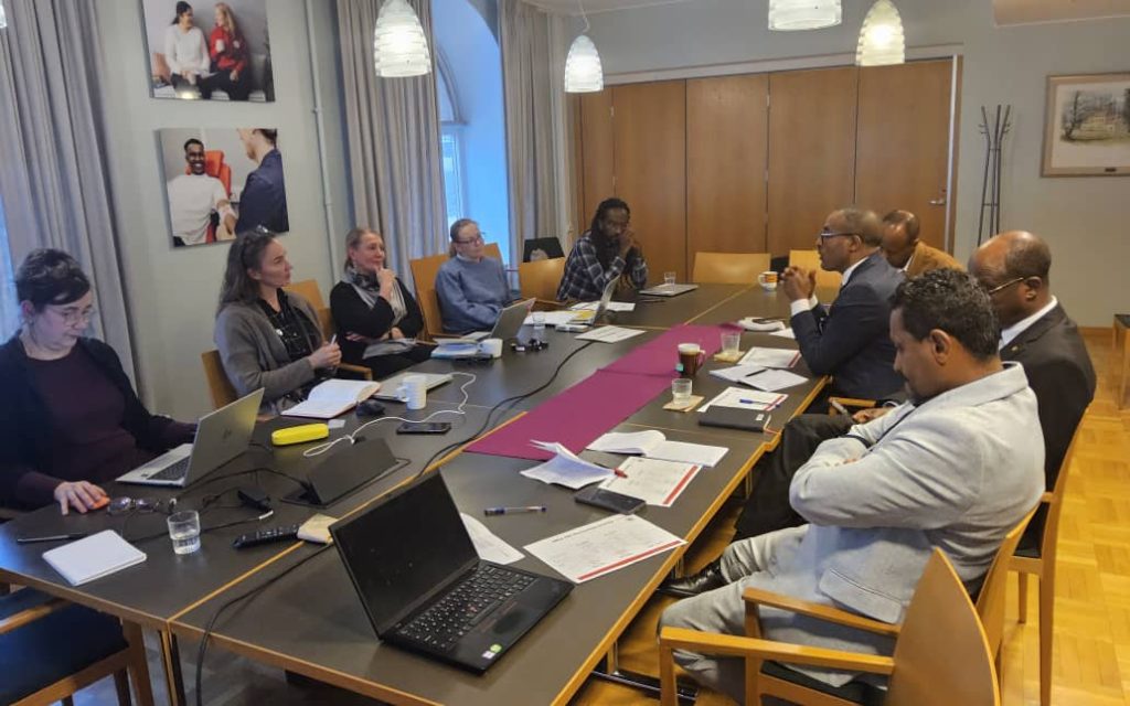 The ERCS delegation, consisting of Ambassador Tawfik Abdulalhi, Member of the National Governing Board; Ato Abera Lulessa, Secretary General; and other members of the executive team, discussed various issues with the President, the Secretary General, and other colleagues of the Finnish Red Cross (FRC).